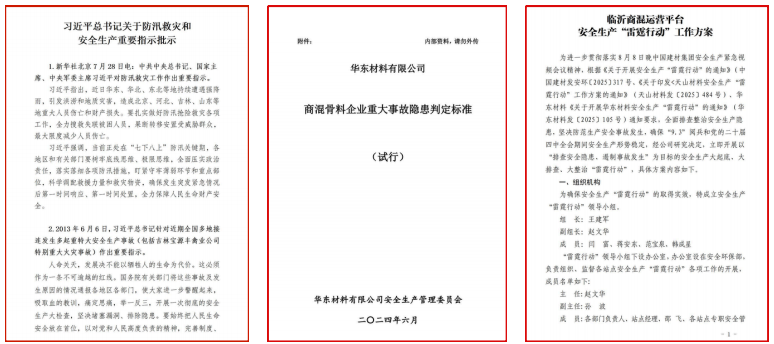 会上,总经理、安委会主任王建军领学了习近平总书记关于安全生产的重要指示批示,逐项学习了《华东材料商混骨料企业重大事故隐患判定标准》;总经理助理赵文华传达了8月8日晚中国建材集团安全生产紧急视频会议精神,中国建材集团、天山材料、华东材料《关于开展安全生产“雷霆行动”的通知》;安全环保部经理孙波详细讲解了《临沂商混运营安全生产“雷霆行动”工作方案》。